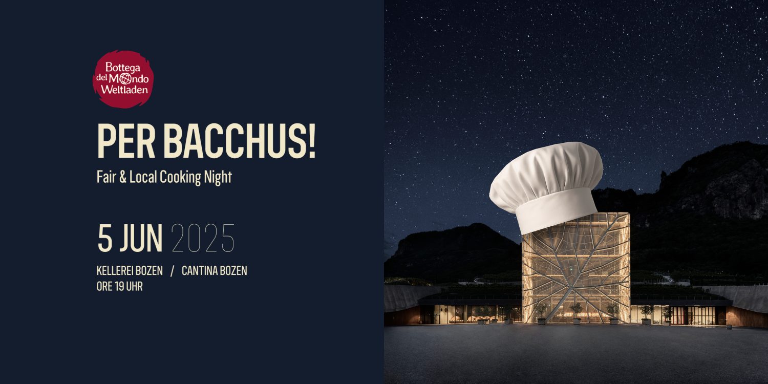 Aperitif/Aperitivo: Weltladen Bozen Mit dabei: 10 Produzenten der Vereinigung Südtiroler Sekt Dolmas Weinblätter: gefüllt mit Quinoa*, Gemüse und Fair Trade Gewürzen* oder mit Basmatireis, Fleisch vom einheimischen Rind und Fair Trade Gewürzen*Lenkhof, Hafling: Chutneys, Joghurt, Käse, FruchtaufstricheObertimpflerhof, Vöran: Bauernspeck,